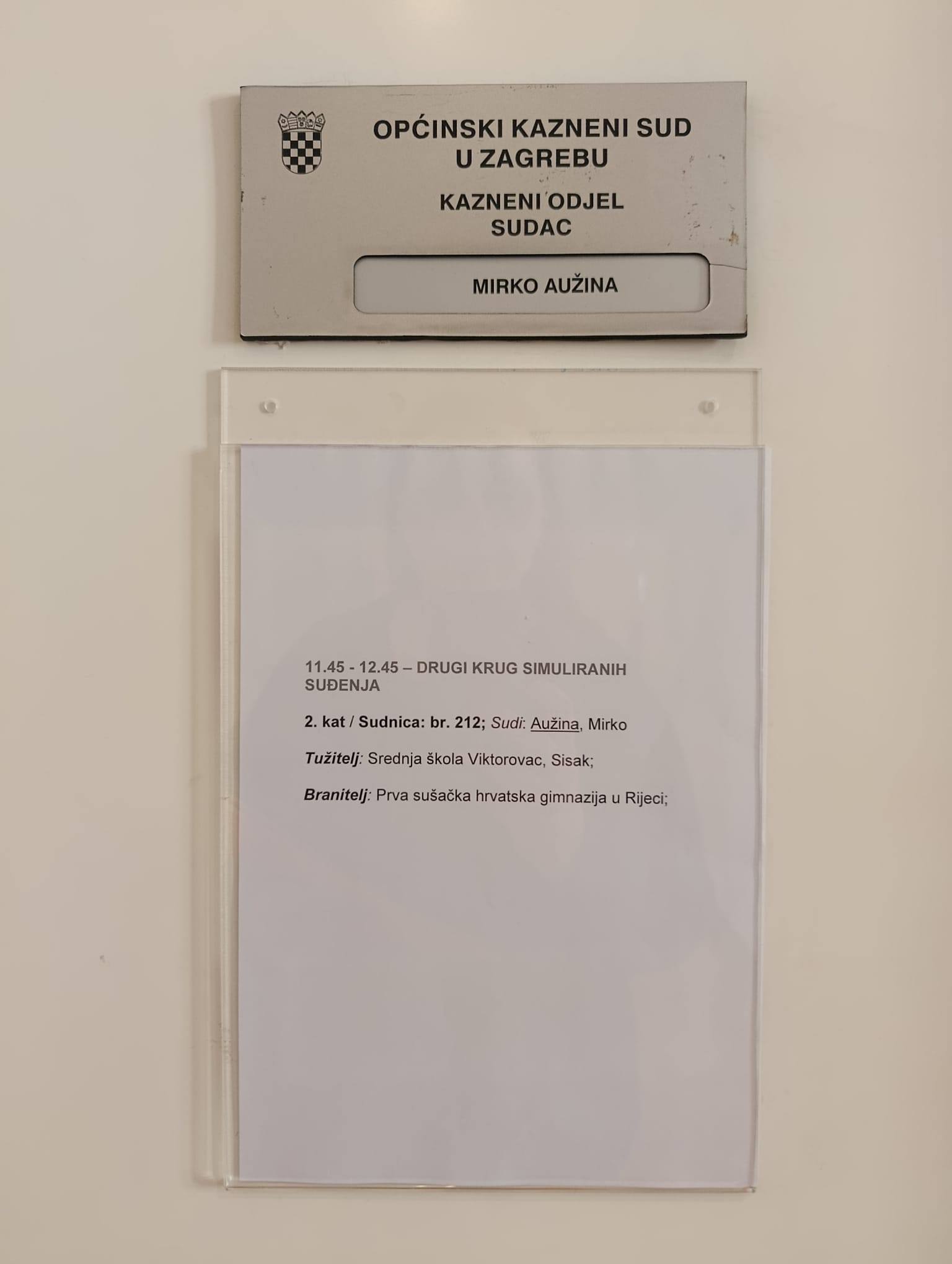 građanskoga odgoja i obrazovanja na Općinskom kaznenom sudu u Zagrebu.
