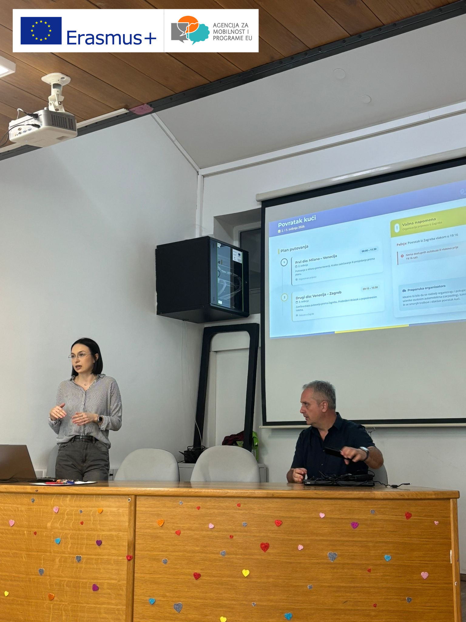 Pripremna radionica u sklopu Erasmus+ projekta mobilnosti održana je 17. ožujka 2026. godine. Radionicu su vodili Erasmus+ koordinatorica i školska psihologinja Nikol Leskovar te ravnatelj škole Hrvoje Kovačić.