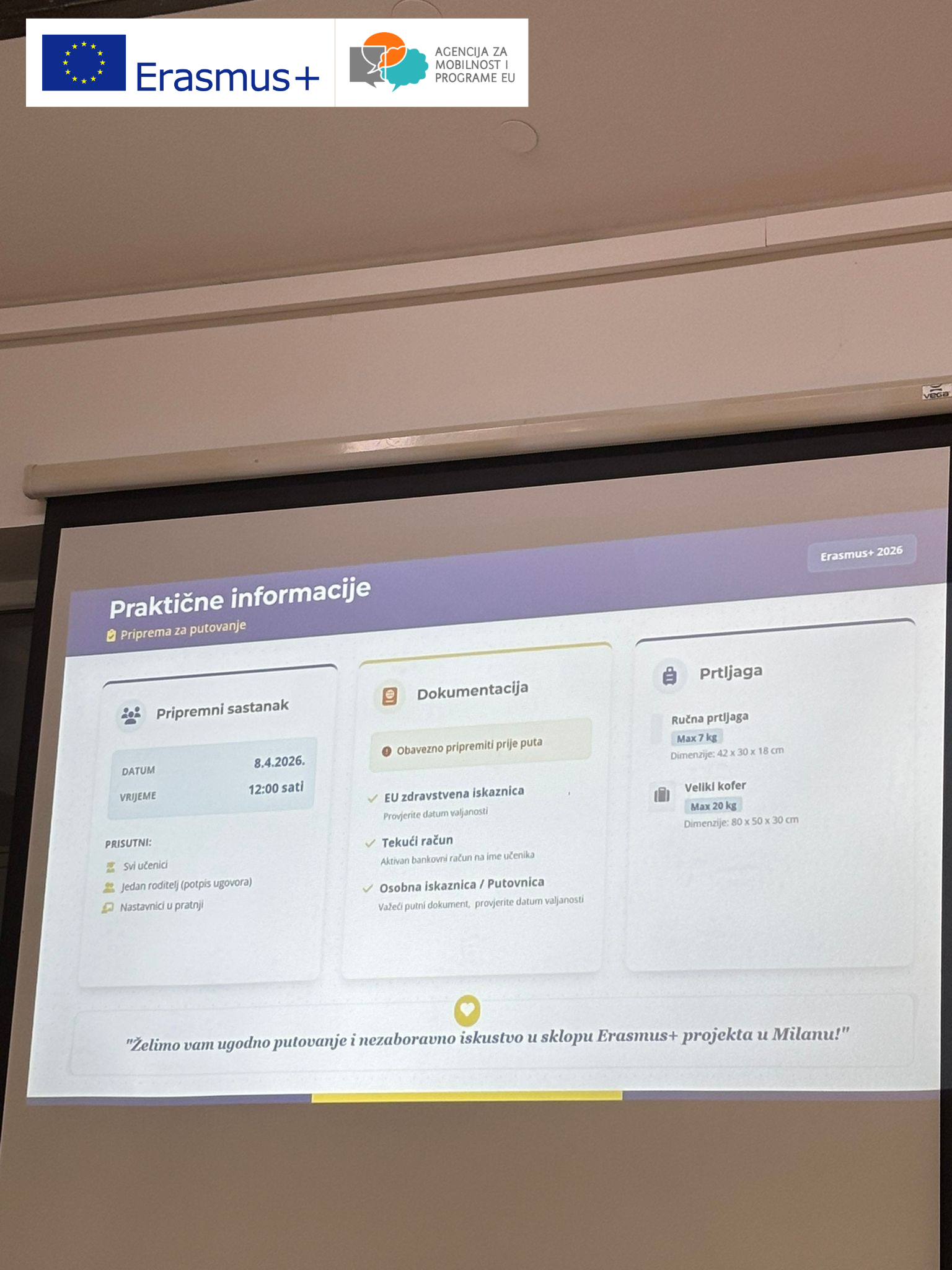 Osim toga, tijekom radionice podijeljeni su dodatni korisni savjeti i preporuke koji će učenicima pomoći u svakodnevnom životu u inozemstvu – od komunikacije u međunarodnom okruženju do razvijanja samostalnosti i odgovornosti.